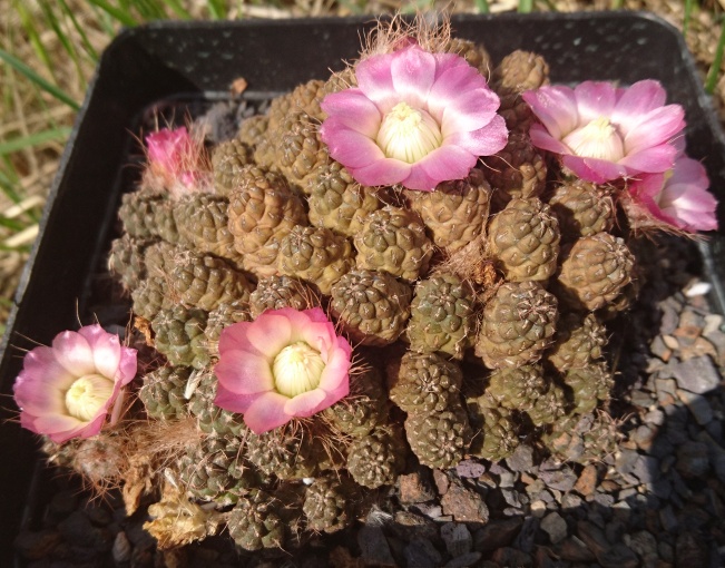 freue mich das die Pflanze so gut schon gesprosst hat u. nun wenigstens sich mit einer Blüte bedankt. Der Klon blüht eigentlich sehr reichlich, bei mir war dieses Jahr bisher auch nur eine Blüte vorhanden. Aber das kann noch werden, sie blühen in mehreren schüben. So langsam fangen meine Opuntioideen an zu blühen, wie auf dem Bild zu sehen ein Pterocactus kuntzei aus Samen gezogen.