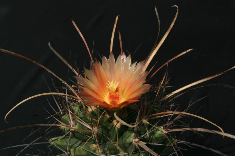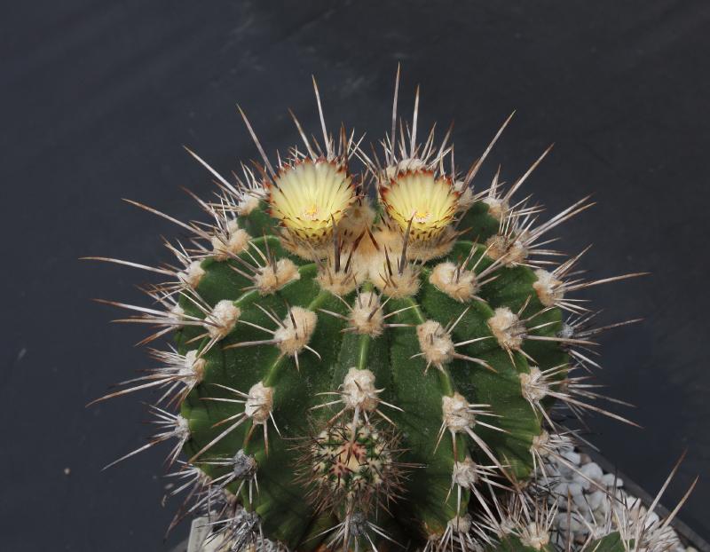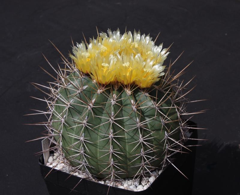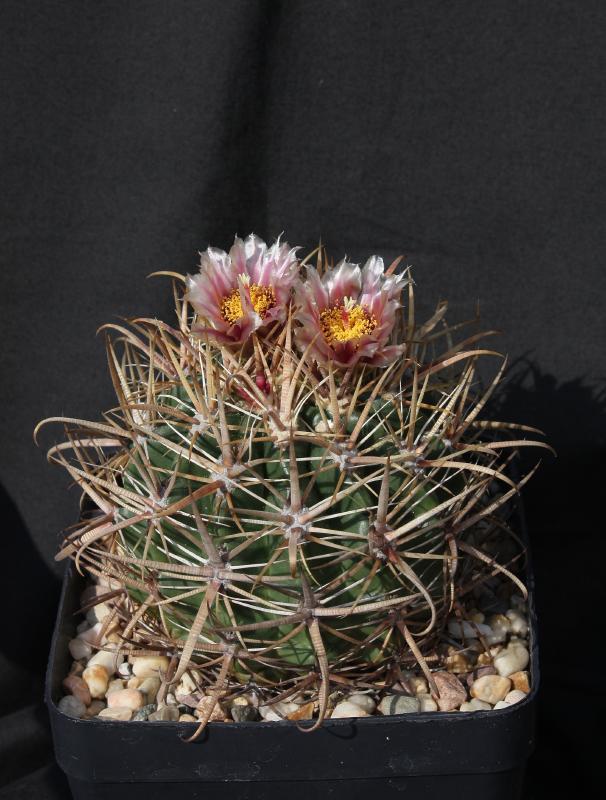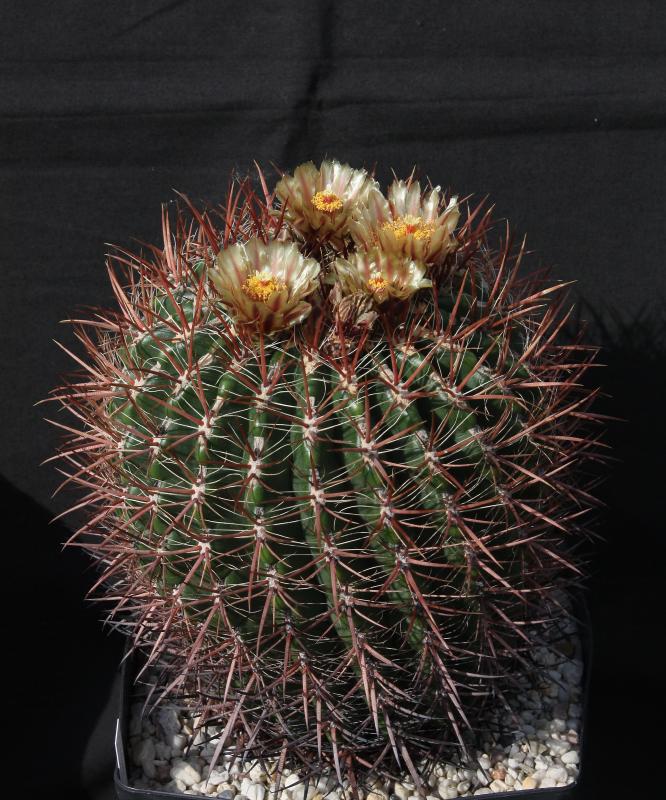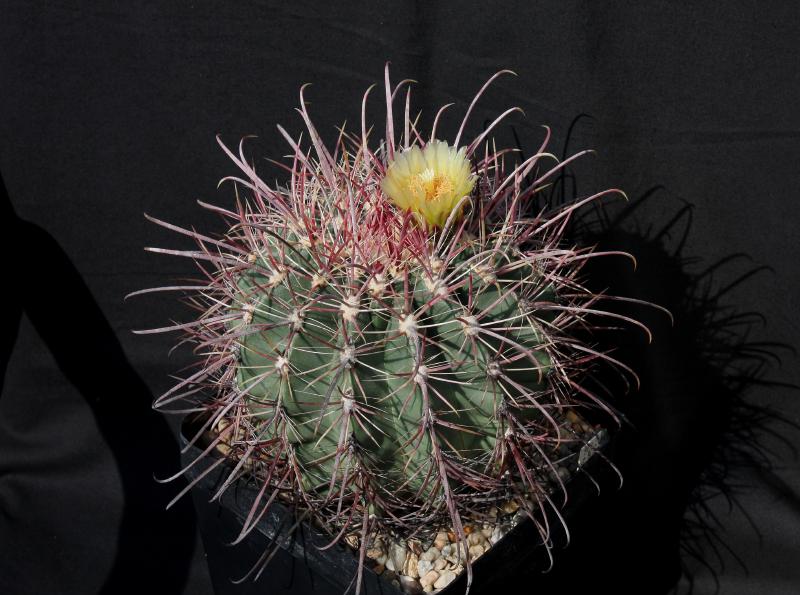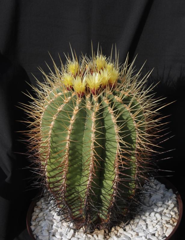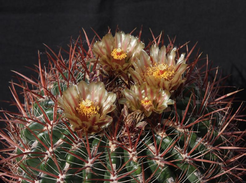Der zweite Fero ist ein F. acanthodes var. tortulispinus, der gerade (nach 19 Jahren in Kultur und einem Durchmesser von 14 cm) zum ersten Mal blüht.