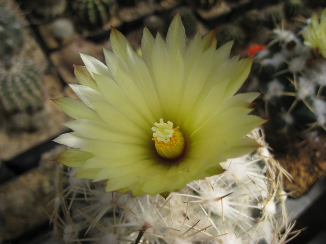 bei mir ist nun die Coryphantha reduncuspina zur Blüte bekommen. Ich habe die Pflanze von meinen inzwischen verstorbenen Freud übernommen.