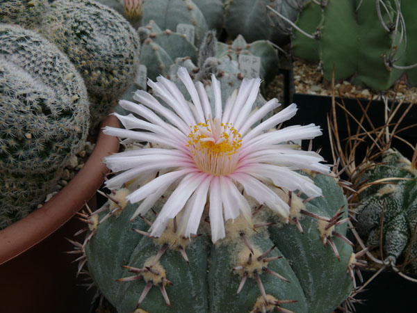 heute blühen zum wiederholten Mal wieder zwei fast weißblütige E. horizonthalonius. Der erste ist eine Pflanze, wie sie um den Ort San Antonio de los Castillo in SLP vorkommen sollen. Den zweiten habe ich schon mal am 7. Mai vorgestellt. Dieses Mal wirkt die Blüte heller, weißer, als im Mai. Blühende E. horizonthalonius sind immer wieder schön anzusehen.