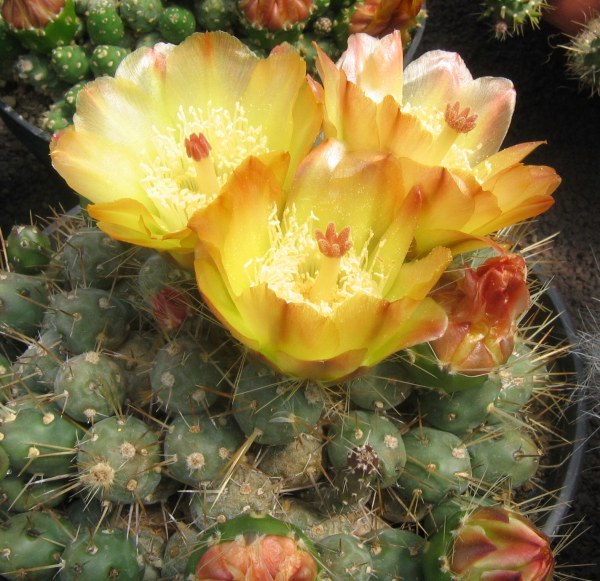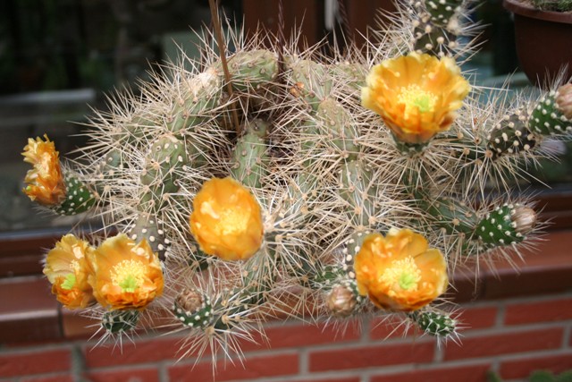 in diesen Sommer haben bei mir 2 Platyopuntia platyacantha geblüht es war eine dabei mit einer cristaten Blüte an dieser Pflanze waren insgesamt 13 Blüten :) :) gekommen