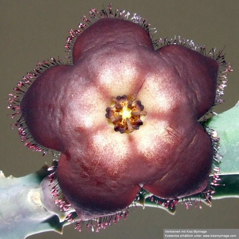 Die nach unten gerichtete blüte misst nur ca. 3,5 cm durchmesser und hat dabei ihre blätter weit nach hinten geklappt.