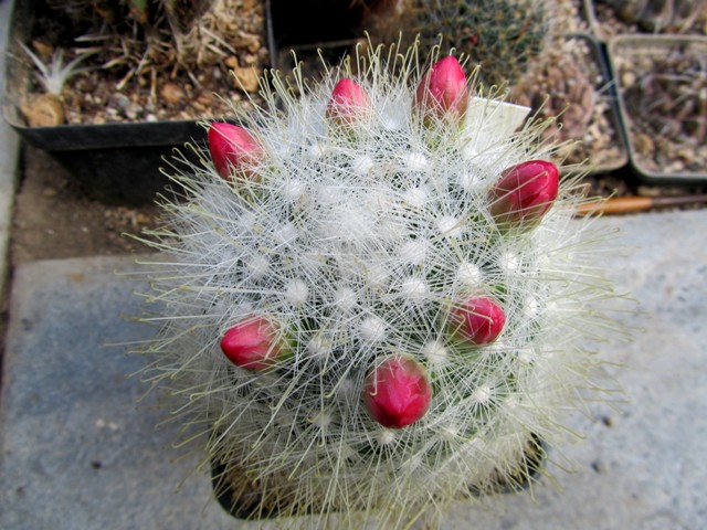 Deine Mammillaria sanchez-mejoradae ist einfach ein Traum! Ich beschäftige mich zwar nicht so sehr mit Mammillarien, aber diese Gruppe ist ein tolles Beispiel dafür, was passiert, wenn man eine Gruppe nicht auseinander reißt oder mehrere Sämlinge auf Dauer zusammen kultiviert. Es entsteht ein Polster, das zur Blütezeit in einem Blütenmeer versinkt.