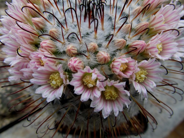 meine Mammillaria perezdelarosae ist nun voll erblüht.