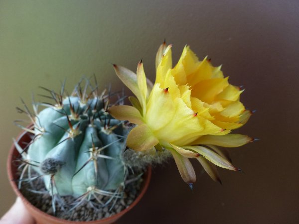 Passend dazu hab ich dann Fotos von einem blühenden Acanthocalycium glaucum mit gelben Blüten !