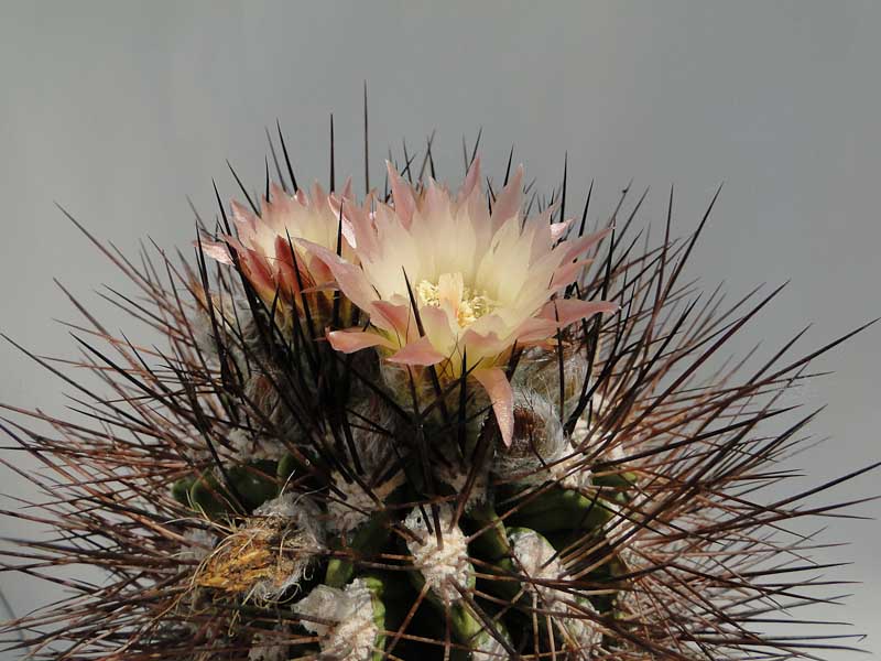 der Vollständigkeit halber noch zwei Bilder von Neoporteria/Neochilenia floccosa - Eriosyce taltalensis var. floccosa sensu Hunt -, die schon vor drei Wochen Ihre Blüten öffnete. Die Blüten sind deutlich blasser als diejenigen der Pflanze von Cay http://kuas-forum.de/viewtopic.php?f=35 ... cosa#p5442.