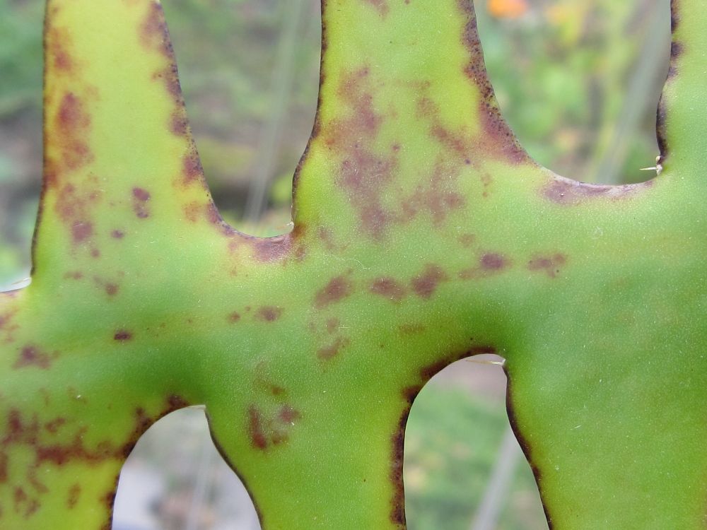 ein Cryptocereus anthonyanus sieht leider komplett fleckig aus. Ich tippe auf einen Pilz. Kann mir jemand evtl. Näheres dazu sagen?