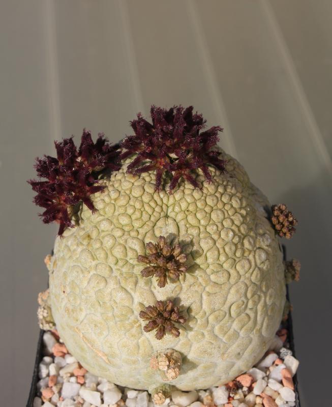 meine Fockea edulis blühen seit dem Sommer. Sie stehen derzeit bei ca. 6°C bis 12°C im Gewächshaus.