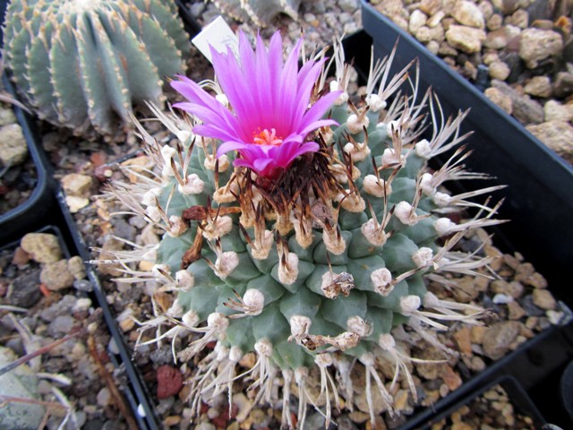 ich habe mal die Sammlung von Gerald Niess Besucht. Raritäten hart gezogen. 2 sehr schöne Gewächshäuser sind auf seinem Grundstück mit vielen sehr schönen Schaupflanzen. Dort habe ich Echinocereen gesehen die bei mir nicht blühen wollen z.B. Echinocereus delaetii mit 10 Blüten leider waren sie schon verblüht.
