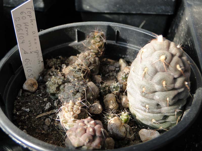 Halo, nein ausgesäht habe ich die Samen nicht- das Hat Hans Peter im Mai 2007 gemacht . Da kein Tag vermerkt ist kann amn nicht sagen in welcher Mondphase es war....Ich habe den Topf mit den drei größeren so wie er ist von HPT bekommen. Vom Ausehen der drei älteren Sämlinge würde ich so 3 Jahre beim größeren und 1 Jahr bei den kleineren als Alter schätzen.