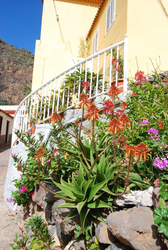 Zunächst möchte ich ein paar Eindrücke vermitteln, welche Sukkulenten in unmittelbarer Menschennähe zu finden sind: in Vorgärten, auf Balkonen und Terrassen. Danach – Schritt für Schritt – werde ich die natürlich vorkommenden kanarischen Sukkulenten vorstellen, meist Endemiten des Archipels, manche sogar auf nur wenigen Inseln oder nur auf La Gomera vorkommend. Zwischendrin sind bestimmt auch ein paar Landschaftsaufnahmen dabei ;)