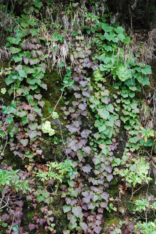 Feuchte Felswand mit Efeu (Mirador de Tajaque, Nordwestflanke des Cumbre de Tajaque, südlich Hermigua):