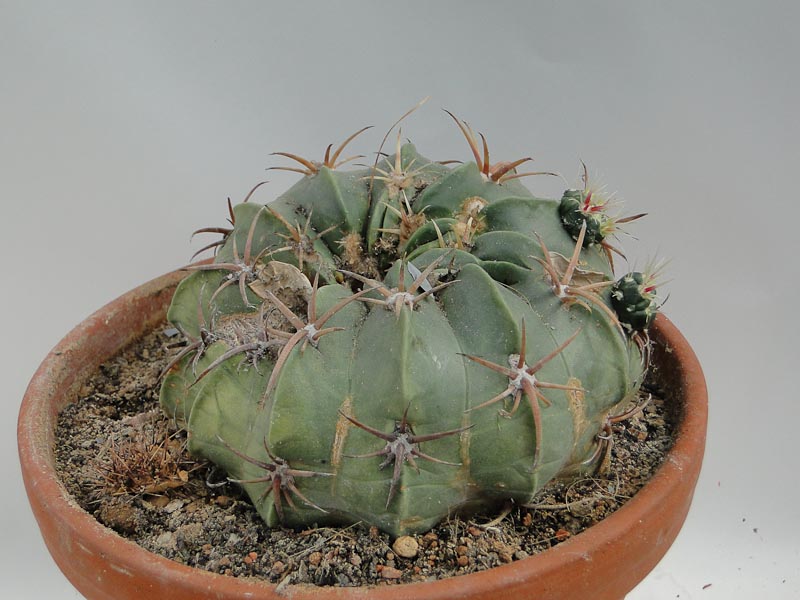Mit dem Blühen bei F. macrodiscus ist das so eine Sache. Es gibt Pflanzen, die blühen schon mit etwas mehr als 5 cm Durchmesser, aber auch andere (wie meine), die brauchen schon 15 cm oder mehr.