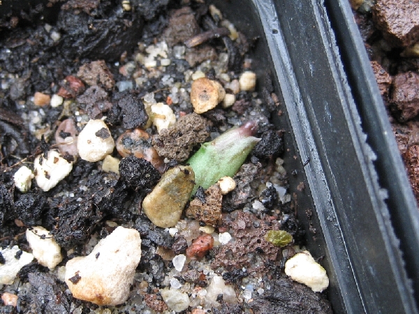 ...übrigens schiebt sich mein Orbeanthus immer wieder in das Erdreich und kommt dann irgendwo wieder als grüner Trieb heraus.