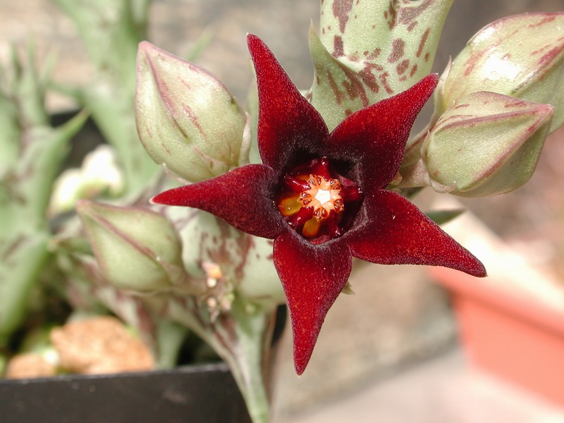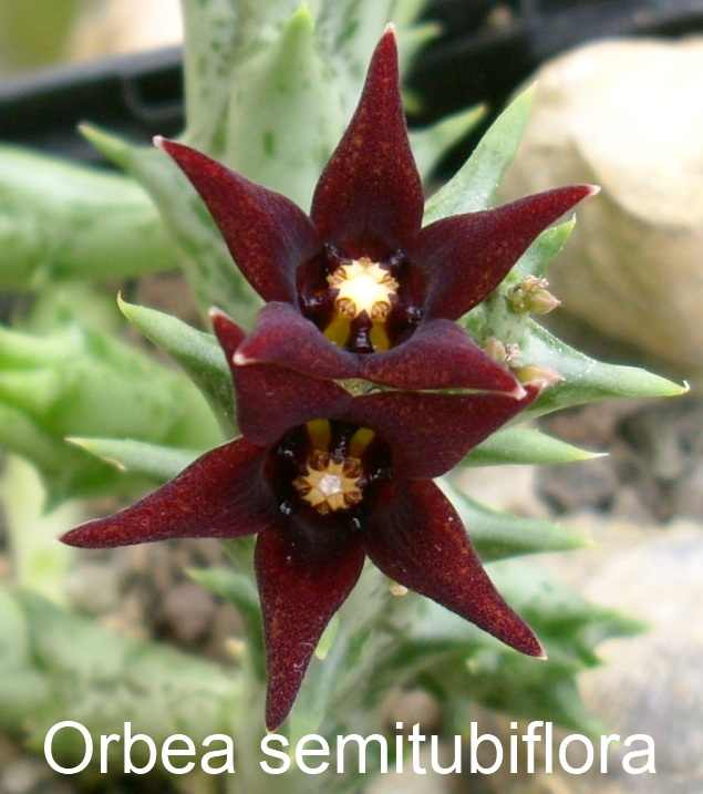 unsere Orbea semitubiflora hat seit ein paar Wochen auch beschlossen zu blühen. Laut Bruyns kommt die Art auf vegetationsoffenen bis mäßig exponierten Flächen mit niedrigem Gehölzbestand zwischen Steinen und in Spalten vor. Das Gestein wird als "Lava" bezeichnet.