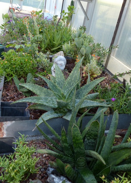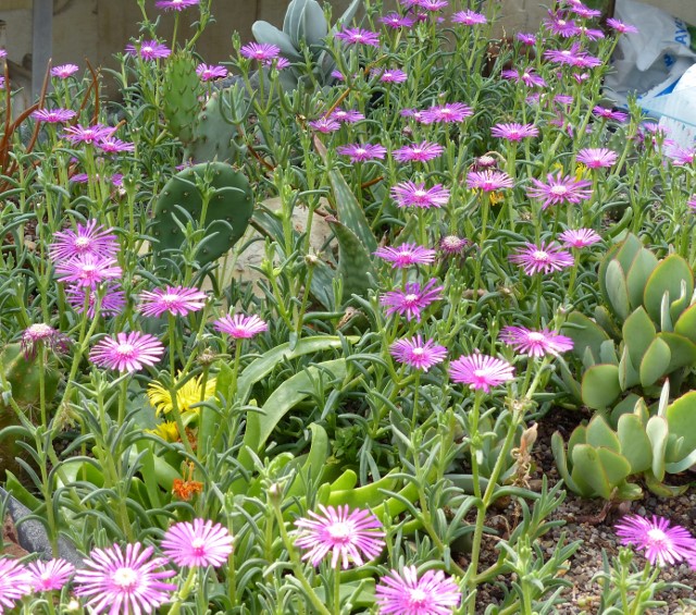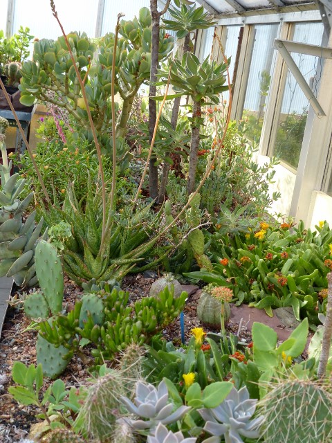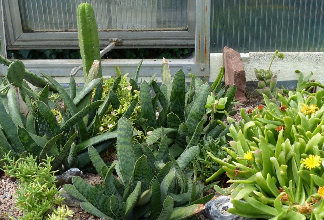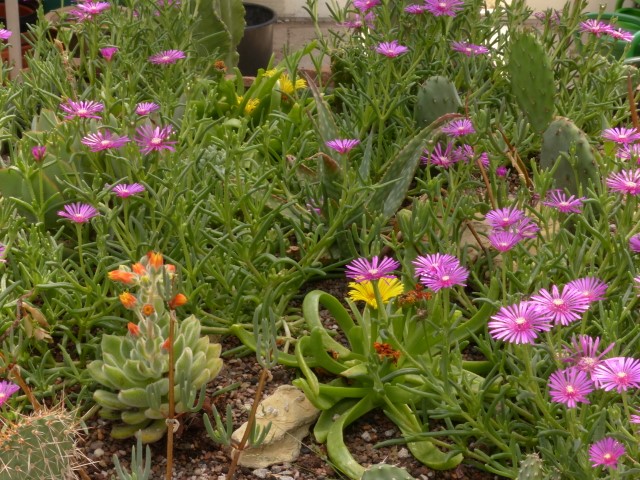 Die Bepflanzung besteht nun aus strauchigen Mesembs,Glottophyllums,Gasterias, Aloen, Euphorbias, winterharte Opuntias,