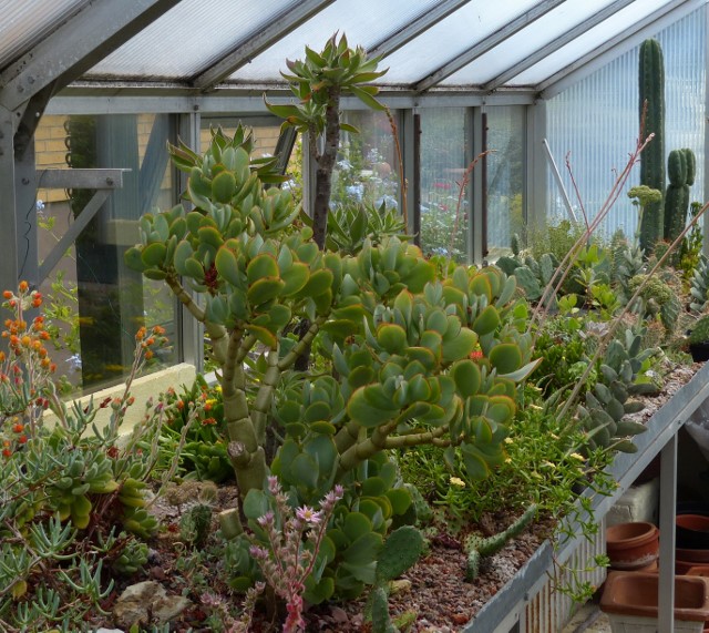 und anderen Kübelpflanzen. Wenn man im Winter aus dem Wohnzimmer schaute, blickte man auf das fast leere Gewächshaus.