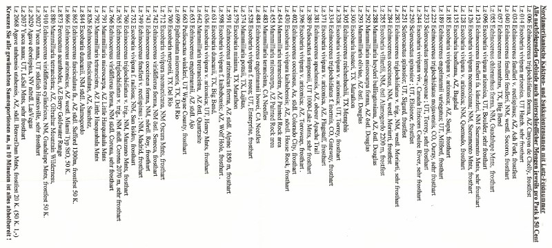 U.S.A. Kakteensamen. Alle Portionen sind mit Namen beschriftet und mit einer LZ-Nummer, siehe Liste. Ich möchte diese Portionen kostenlos an Euch abgeben. Schickt mir einen mit 58 Cent freigemachten Umschlag, und ich schicke Euch 10 Portionen nach meiner