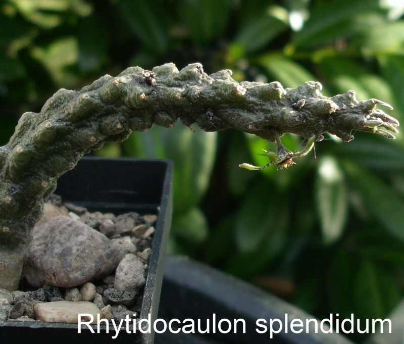kann nun endlich wieder eine Pflanze dieser Art mein eigen nennen. Letztes Jahr (s.o.) hatte ich ja eine ziemlich lange einzeltriebige Pflanze, diesmal ist die Pflanze deutlich kleiner, hat dafür aber 4 Seitentriebe. Auch wenns weh tut, einer dieser Seitentriebe wird nächstes Wochenende wohl weichen müssen um auf einer Ceropegia-Knolle Platz zu finden. Die Pflanze ist einfach bedeutend zu teuer (und zu schwer zu bekommen), um nicht zumindest ein Seitenärmchen zu pfropfen - darin hat mich auch Herr Specks beim Kauf der Pflanze nochmal bekräftigt.