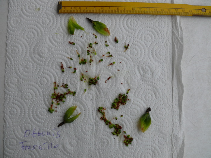 Heute fand ich in einer offenen Beere von Copiapoa hypogaea (C. baraquitensis, SN 174) des letzten Jahres zwei Sämlinge: