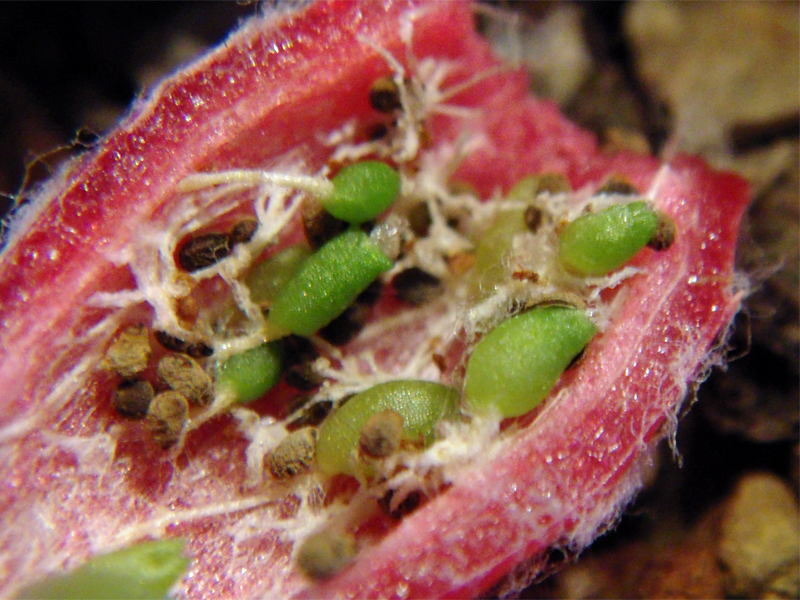 daß Samen in der Frucht schon keimen habe ich 2 x bisher erlebt. Das erste Mal war es bei einer Coryphantha ottonis aus der Nähe von Fresnillo, Zacatecas, Mexiko. Leider habe ich keinen der Sämlinge groß bekommen. Ein Bild und ein Ausschnitt daraus ist beigefügt.