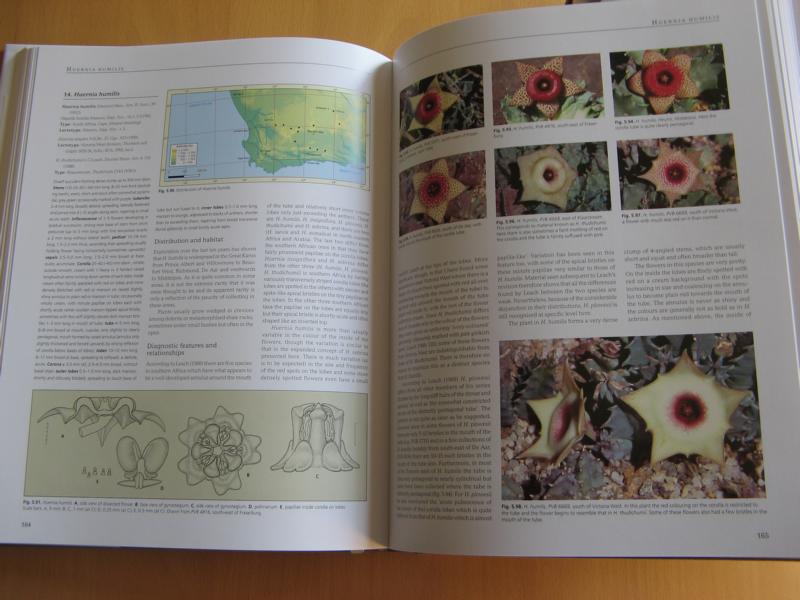 Nun aber zu den Büchern. Bedauerlicherweise sind nur die Arten aus Süd-Afrika und Madagaskar beschrieben. Es fehlt z.B die Gattung Brachystelma. Bei den beschriebenen Arten wird man dafür mit reichlich Infornationen versorgt, die man meiner Meinung noch sonst nirgens bekommt. Verbreitungskarten, Bilder von Standortvarianten, Bild vom Entdecker usw. Die Qualität der Bücher und der enthaltenen Bilder ist größtenteils sehr gut. Die Bücher und der Schuber sind in Leinen gebunden. Ich habe den Kauf nicht bereut.