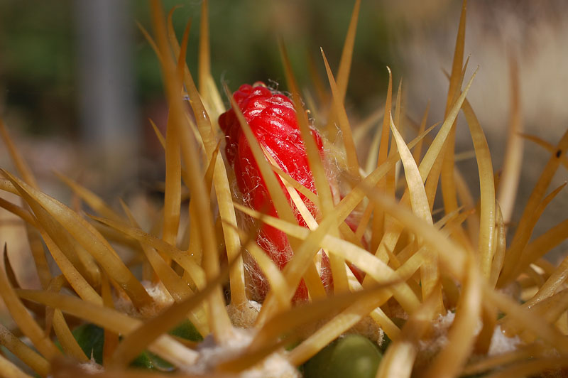 Denmoza ist eine interessante Pflanze...eigentlich sollte es nur D.rhodacantha geben... Interessant ist auch die Verbreitung...von SüdMendoza bis nach Catamarca (Paso San Francisco), wobei die Pflanzen nur wenig variabel sind... bei Cerro Diamante (etwa 1400-1600m ü.m.) gibt es die in der CZ beschriebene var. diamantina (Slaba), aber es ist nur eben die gelbbedornte Form. Bei Cerro Diamante unten sind die gelbbedornte Pflanzen in der Mehrheit - so etwa zu 80%, was es an den anderen Standorten nicht gibt, aber in der Richtung auf Cerro Diamante hoch werden diese eine Minderheit, da kommen die "normalen" rotbedornten Pflanzen, bis auf etwa 2300m ü.m.