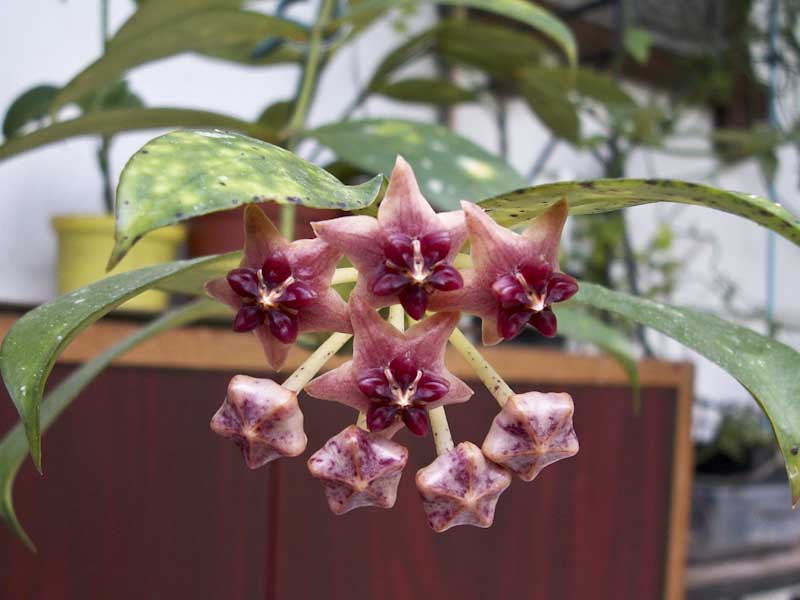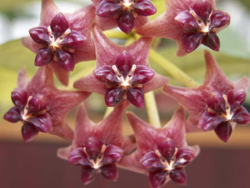 Bei mir blüht gerade eine Hoya lobbii "black". Hab sie mir dunkler vorgestellt. Obwohl sie im Vergleich zu den oben gezeigten Blüten schon recht düster ist...