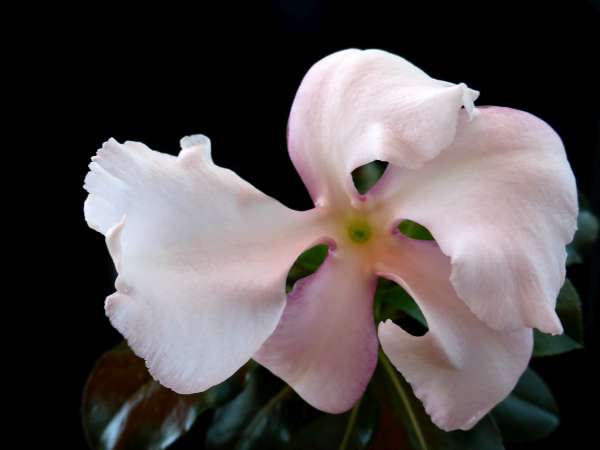nachdem wir schon seit vielen Jahren in der Wohnung ein Pachypodium saundersii pflegen, musste es wegen des Einbaus neuer Fenster in den Wintergarten übersiedeln. Dieser Wechsel ist der Pflanze anscheinend bestens bekommen, denn seit 3 Tagen blüht sie zum allerersten Mal: