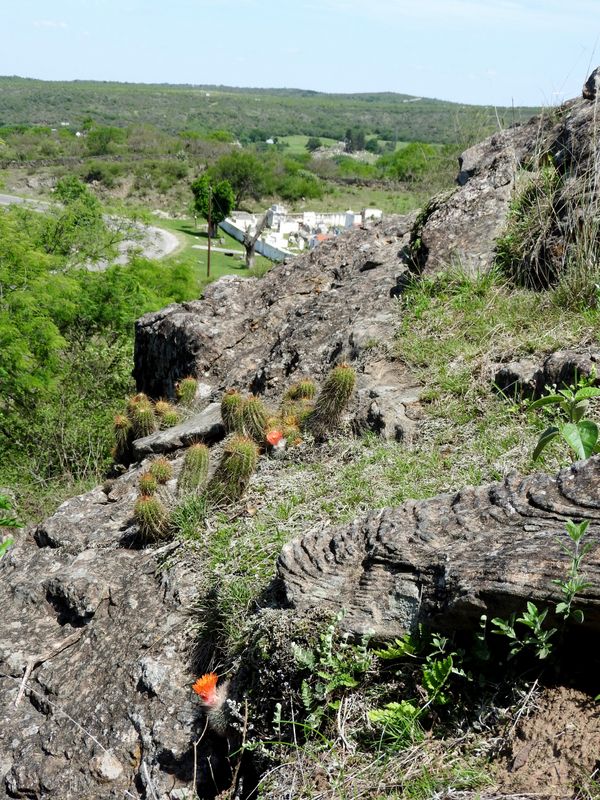 Auf den Höhen der Sierra Ancasti angekommen, wurde die Suche nach Gymnocalycium baldianum intensiviert. In einer Höhe von 1500-1600m verläuft die Straße entlang der nach Westen steil abfallenden Gebirgskante. Herrliche Ausblicke auf das Tal von Catamarca begeistern. Es ist sehr windig, schwülwarm und es sieht nach Gewitter aus (welches letztlich aber ausbleibt).