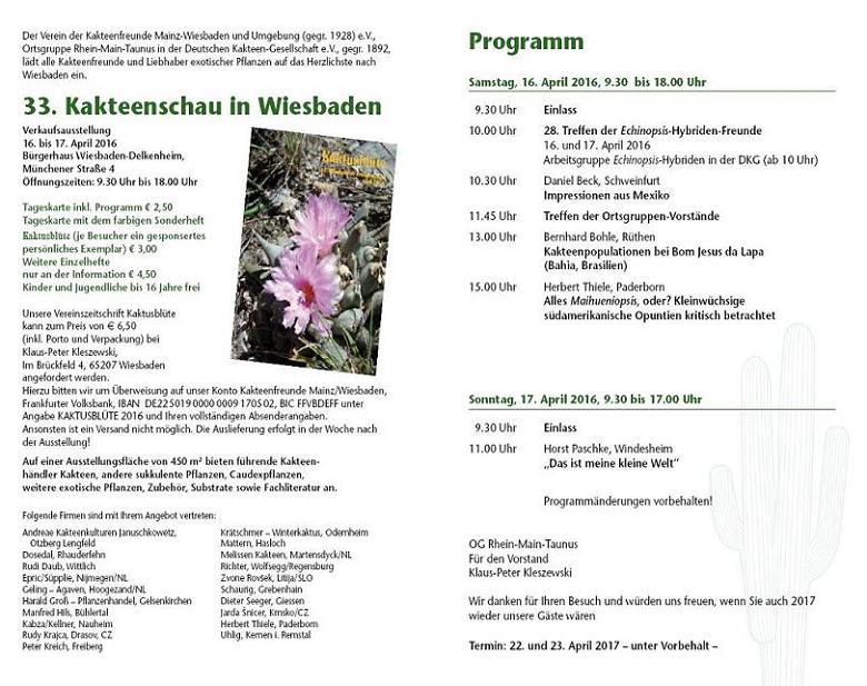 33. Kakteenschau Wiesbaden/Delkenheim 16. und 17. April 2016