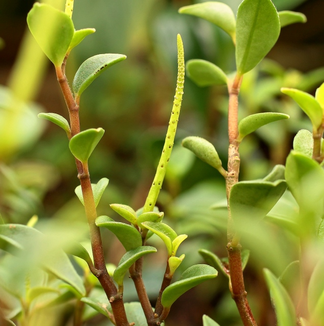 es ist ja immer nicht leicht zu entscheiden, ob eine Pflanze mit fleischigen Blättern schon sukkulent ist oder noch nicht. Da aber viele Peperomien als Sukkulente anerkannt sind, hier auch mal eine Peperomia fernandeziana in voller Blütenpracht