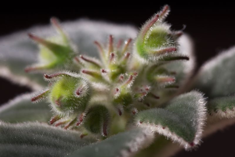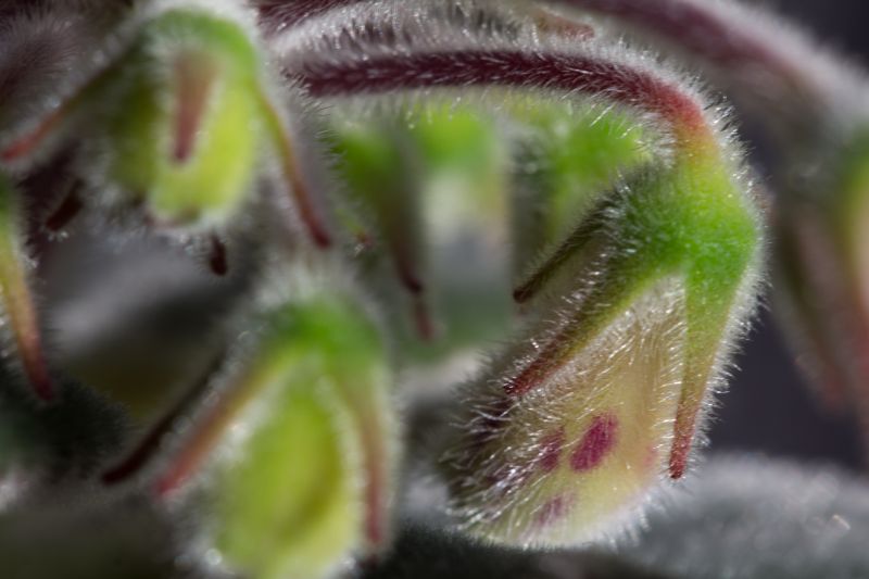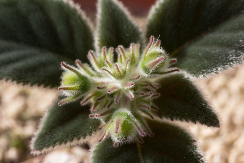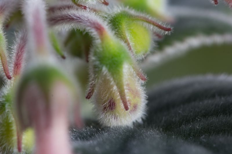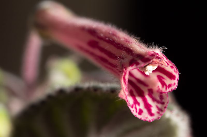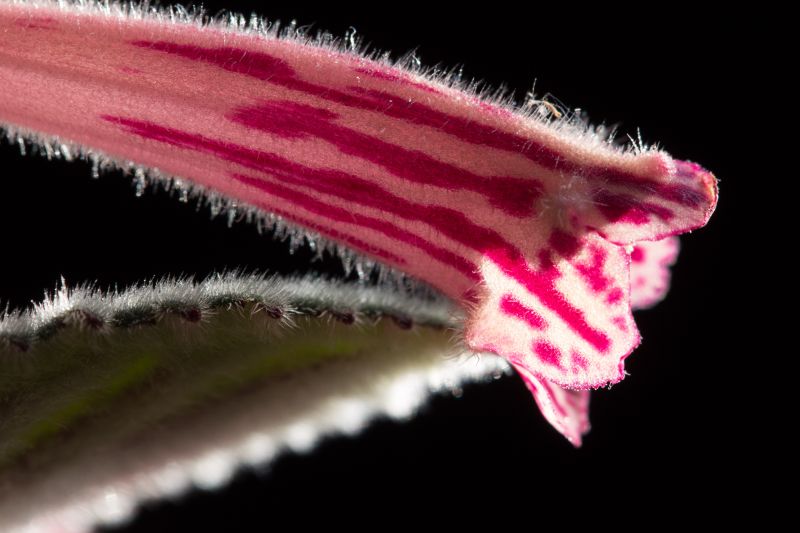 Letzte Woche ist die erste Blüte meiner Sinningia piresiana aufgeblüht. Schmutzig rosa ist nicht gerade meine Lieblingsfarbe, aber aus der Nähe betrachtet - vor allem mit Pelz im Gegenlicht - hat die Art dann doch was. Q.E.D.: