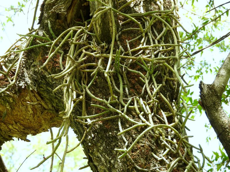 Die vielen Quittenbäume sind uns auch aufgefallen. Überall gab es "Dulce de membrillo". Übrigens meinte CABAC in Bezug auf G.occultum bei Miraflores die P131 (nicht P13). Dieser Standort wie auch die Cuesta sind offensichtlich sehr beliebt bei den Argentinienreisenden - wen wundert es, gibt es hier doch auf kürzester Distanz so vieles zu entdecken. Den Abschluss des Tages bildete eine Wanderung durch das Tal des Rio Pampichuelas, westlich von Conception, etwa 20 km südlich von Miraflores. Hier kann man auf einem schmalen Pfad entlang des Baches den Bosque (=Wald) de Arrayanes erkunden. In schwülheißer Luft windet sich der Pfad entlang des Baches durch subtropische Vegetation. Nicht unbedingt eine geeignete Umgebung um Kakteen zu finden. Aber es gibt ja auch noch die Epiphyten und schon bald fanden wir üppig mit Rhipsalis aculeata bewachsene Baumriesen. Papageien und knapp faustgroße Spinnen (keine Vogelspinne!) erinnern daran, dass wir nicht zu Hause sind. Gigantische Exemplare von Opuntia quimilo stehen hier in Blüte und an den felsigen Prallhängen des Flusses wächst Cleistocactus smaragdiflorus. Auf dem Rückweg wollte ich unbdingt nochmals G.occultum sehen. Also ging es bei Huillapima wieder rein ins Dornengestrüpp. Die Hitze war hier unerträglich und die heftigen Proteste meiner Frau waren durchaus berechtigt. Kein Windhauch sorgte für Abkühlung. Am Horizont ballten sich die Wolken über der Sierra Ancasti. Aber auch heute gab es wieder kein Gewitter. Wir waren uns einig - ein Fund reicht, dann gehts zurück ins klimatisierte Auto. Kaum war die Vereinbarung getroffen kam auch schon der erlösende Ruf aus dem Unterholz. Wunderschöne G.occultum waren Belohnung dieses Zwischenstopps. Ein Cleistocactus gab sich ebenfalls die Ehre. Morgen wird uns die Reise weiter nach Norden führen. Tafi del Valle in Tucuman ist das Ziel, doch davon später...