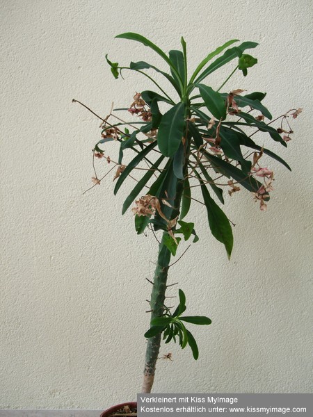 In der vollen Sonne auf dem Balkon schmücken sich die Cyathien mit einem aparten Rot.