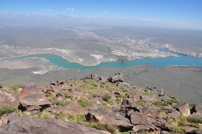 Ein Blick aus dem Cerro Diamante - auf die Digue Aqua del Toro ...links ein Teil der Vulkankaldera ...und oben ausser Kakteen auch diese wunderschöne Oxalis vergesellschaften mit einer Viola vulcanica (?)