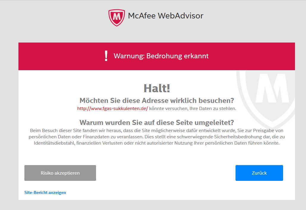 Dabei erhielt ich von meinem Virenscanner folgenden Hinweis: