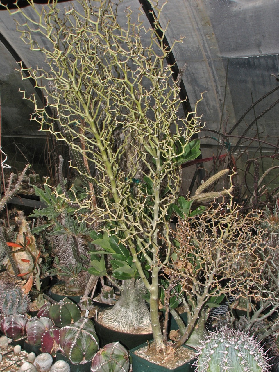 Die Zickzack Pflanze, Decarya madagascariensis. Fängt jetzt Ende Juli an zu wachsen und wird wohl auch bald wieder blühen. Benötigt erstaunlich viel Wasser und bildet mit der Zeit einen Stamm.