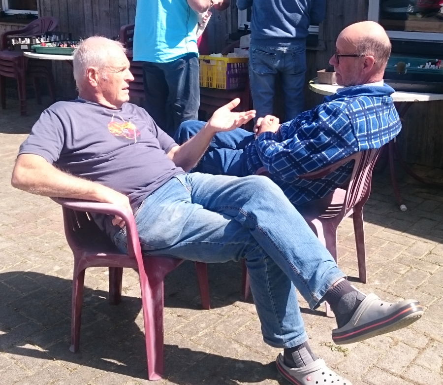 fachliche Diskussion zwischen Peter Lechner und Johan de Vries auf der Terrasse