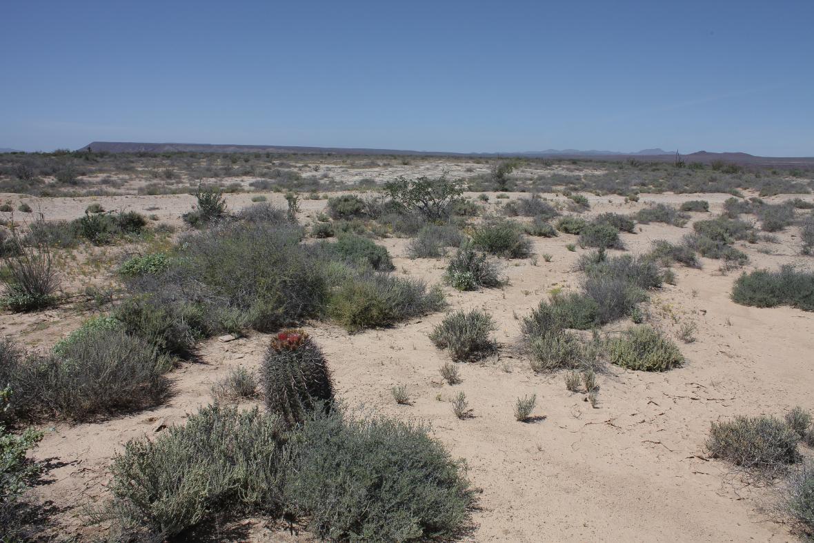 Ferocactus fordii subsp. fordii wächst hier in einer Dünenlandschaft: