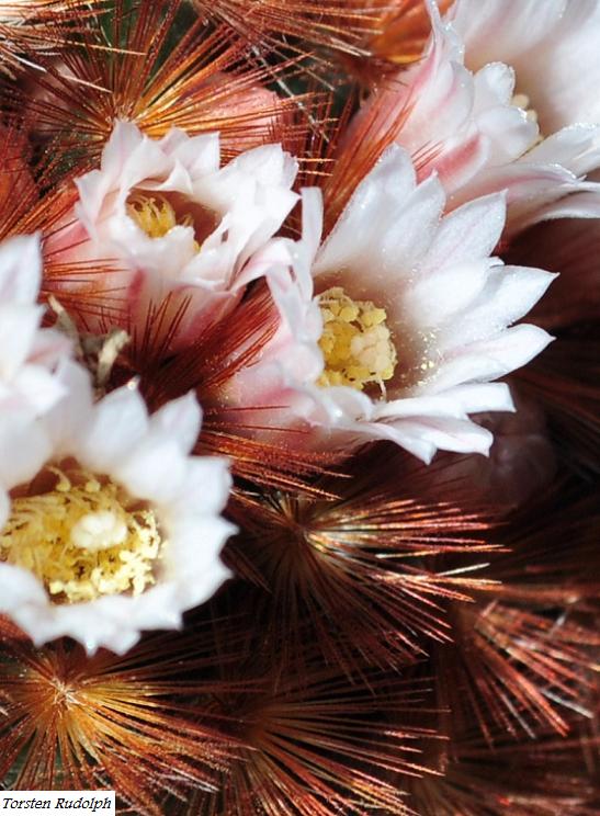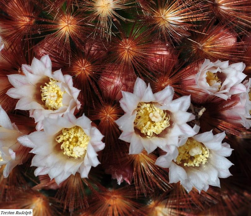 jetzt blüht die Mammillaria carmenae "rubrispina" .
