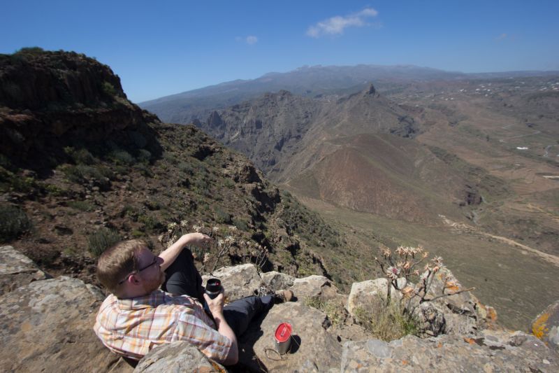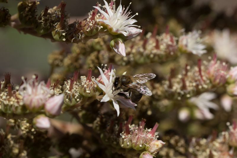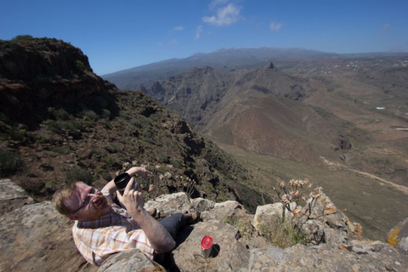 1) Die Tour auf den Conde (Start bei ca. 500 m, Gipfelplateau auf ziemlich genau 1.000 m) hat Chancen auf den kanarischen Taxameter-Highscore, v.a. wenn man den nicht nur auf eine Gattung eicht (auch sowas soll's ja vereinzelt geben ...), sondern auf alle Sukkulenten. Auf dem Weg nach oben habe ich bisher 3 sukkulente Euphorbia-Arten, 3 Aeonien, Senecio kleinia, je 1 Monanthes, Umbilicus + Ceropegia sowie die nicht ganz autochthone Opuntia dillenii gefunden, allerdings allesamt fest verwurzelt in der Erden. Im Fluge kommen da wohl nur die Samen vorbei, und das im Falle der Crassulaceen ob ihrer Winzischkeit vermutlich eher unbemerkt.