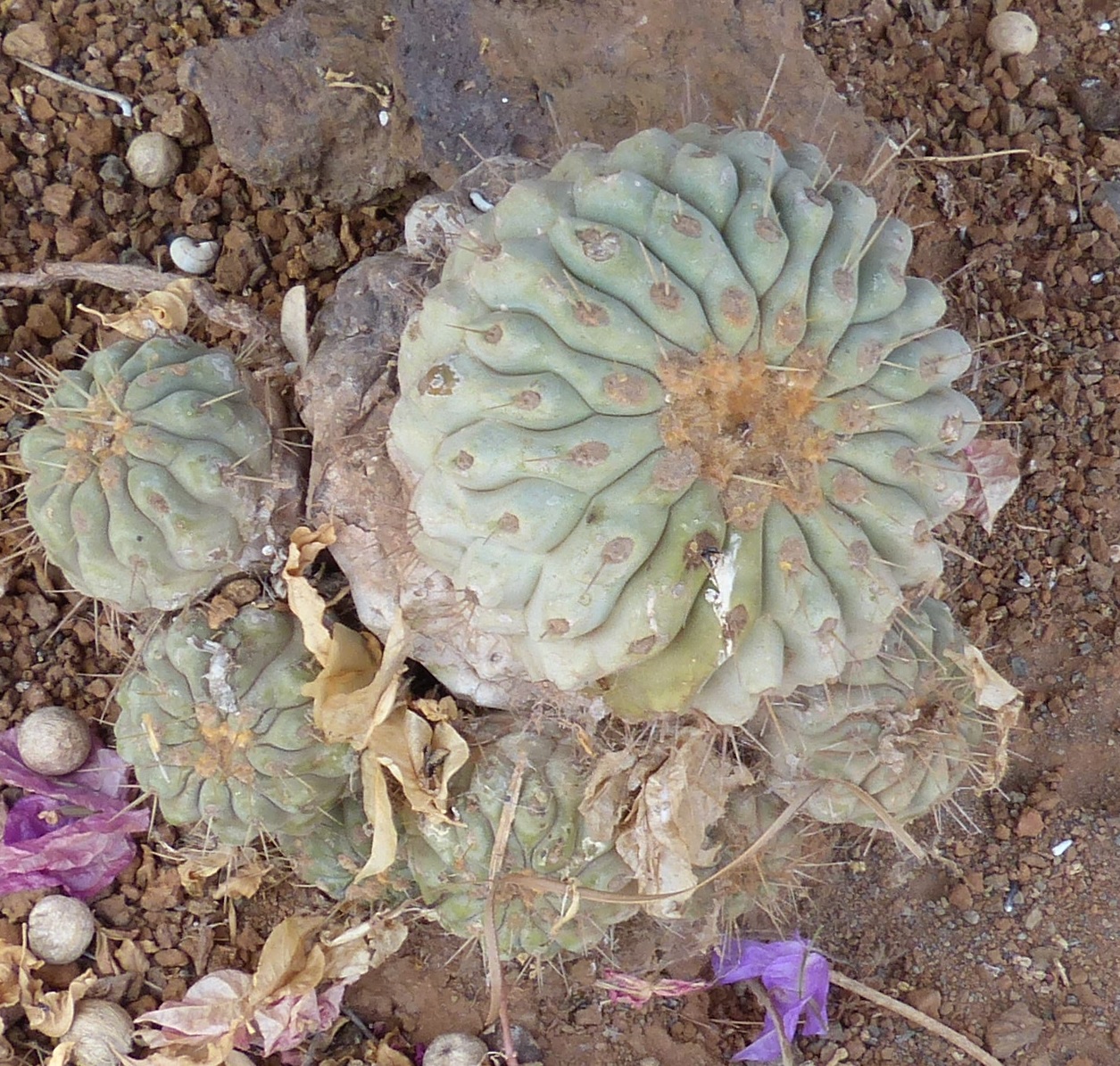 Als Stiefkind wächst die Copiapoa unter einem Busch vor dem Gewächshaus !