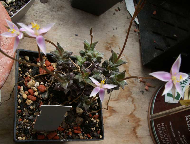 habe vor langer Zeit eine Anacampseros namaensis erworben. Man hat mir gesagt sehr Vorsichtig mit Wasser deshalb habe ich die Pflanze im Wintergarten sehr hoch aufgehangen und wenig gegossen, dabei habe ich übersehen das die Pflanze diesen Sommer geblüht hat Schade
