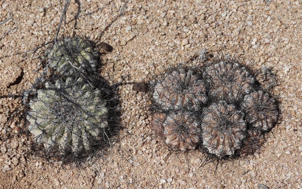 ... und hier zusammen mit Eriosyce esmeraldana (ich nehme zumindest einmal an, dass der „Jackenknopf“ eine solche ist), ebenfalls in der Quebrada Guanillos.