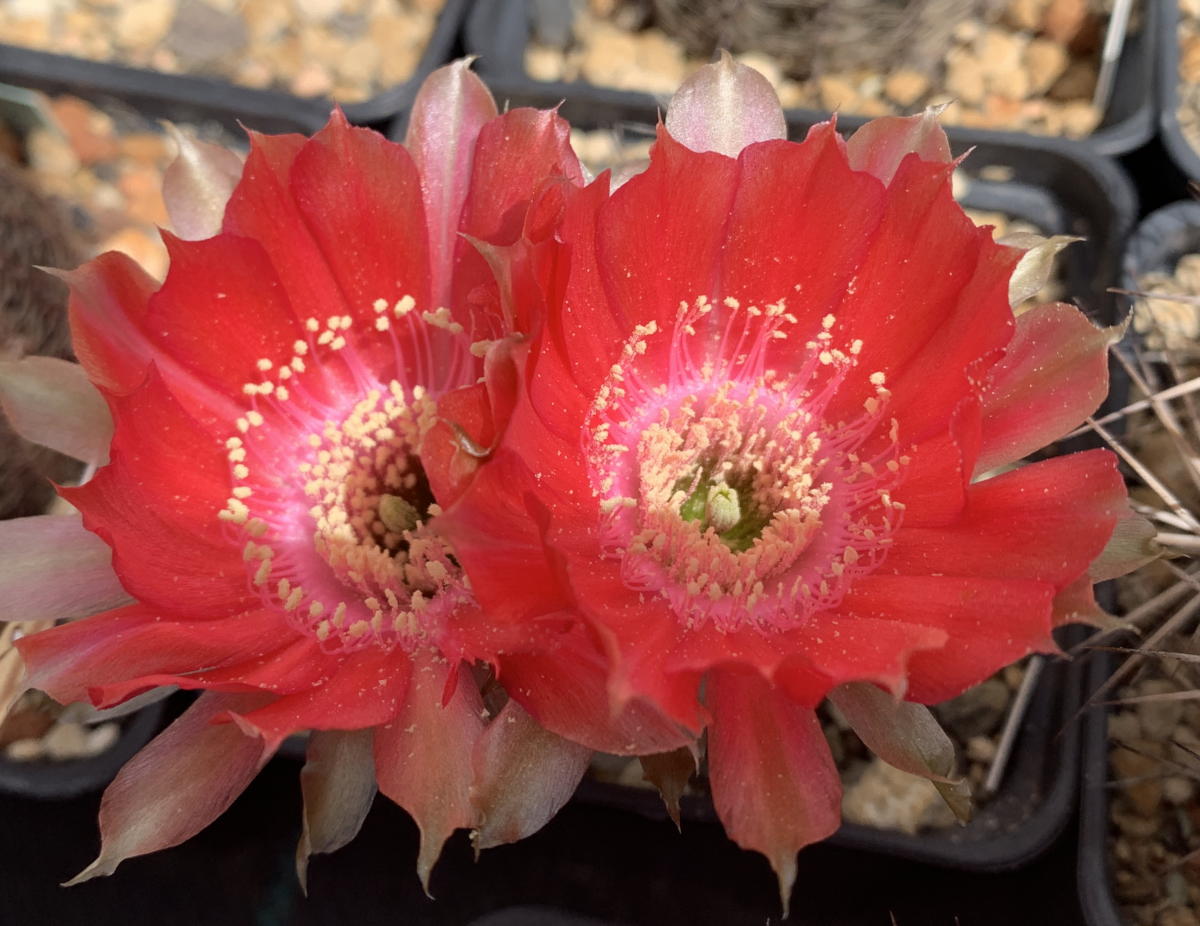ich "hänge" mich mal hier an den Thread dran. Ich habe hier aus dem Nachlaß meines Freundes Konrad Meißner 4 Pflanzen mit der Bezeichnung Lobivia pectinifera ES39. Aktuell laufen die wohl unter Lobivia haematantha v. rebutioides (http://www.cl-cactus.com/fn.asp?FnID=33 ... 4864015249) und dann sind wir ja hier richtig. Sie haben sehr schöne, bunte Blüten. Die Planzen wurden kreuzbestäubt und nächstes jahr gibt es die Samen in der Samenverteilung der DKG.