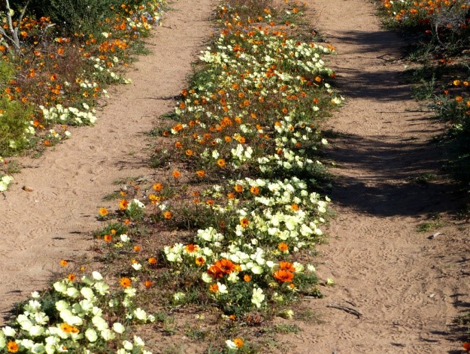 es stimmt, dass Teile von Südafrika sehr trocken und sukkulentenlastig sind, aber es gibt Gebiete mit Winterregen, also die Regionen, die in diesem Bericht bereist wurden, und Sommerregen-Regionen weiter östlich und nördlich. Das heißt, einmal im Jahr kommen dann doch regelmäßig Niederschläge herunter. In 2019 hat es in der südlichen Namib-Wüste und im Namaqualand schon früher und mehr als gewöhnlich geregnet (das nennt sich auch Klimawandel), aber der positive Effekt auf die Flora war auch schneller als sonst vorbei. Eigentlich könnte man noch mehr Blüte in der Monatswende von August auf September erwarten. Die blühende Wüste ist zeitlich auf wenige Wochen limitiert. Danach ist es dann mindestens 9-10 Monate knochentrocken und braun. Außerdem gibt es einen Gradienten von Nord nach Süd, in dem die Feuchtigkeit stetig zunimmt. Daher liegen die Kapflora und die Flora der Karoo praktisch Tür an Tür und gehen an manchen Stellen fast unmerklich ineinander über. Südafrika ist in vielerlei Hinsicht extrem kompliziert, in den Ökosystemen gleichermaßen wie beim Klima oder der Geologie. Das aber ist genau das Geheimnis, warum das Land immerhin mindestens 20.000 Pflanzenarten beherbergt. Buchstäblich alle 50 Kilometer ändert sich die Landschaft und die Ökologie. Und wer Verbreitungskarten verschiedener Arten studiert, ist erstaunt, auf welch kleinen Flächen viele Arten vorkommen.
