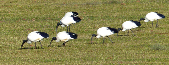 Heilige Ibisse (Threskiornis aethiopica) bilden oft große Schwärme.