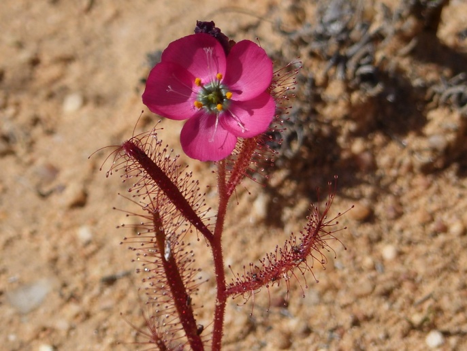 Monsonia crassicaulis bringt wenigstens etwas Farbe in eine ansonsten braune Landschaft.