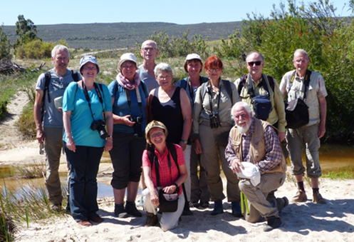 Wir befinden uns wieder, wie schon am Anfang der Reise, inmitten der Fynbos-Region und zwar im sogenannten Renosterveld. Die Fynbos-Vegetation, auch Kapflora genannt, stellt ein eigenes Pflanzenreich dar. Auf einer Gesamtfläche vergleichbar mit der von Bayern und Hessen zusammen genommen wächst eine weltweit einzigartige Vegetation mit dem immensen Reichtum von beinahe 10.000 Pflanzenarten. Von denen kommt ein Großteil nur innerhalb dieser Grenzen vor. Während sich die anderen Pflanzenreiche über Kontinente erstrecken, beansprucht die Fynbos-Vegetation nur einen kleinen Teil von Südafrika. Das für sich ist schon erstaunlich. Und so überrascht es kaum noch, dass die Fynbosvegetation nicht einheitlich ist, sondern ihrerseits in mehrere Unterabteilungen zerfällt und jeder dieser Teile wiederum sein ureigenstes Arteninventar beherbergt. Heute lernen wir den besonderen Typus des Renostervelds kennen, und zwar den des Sandstein-Gebirges. Uns umgeben bizarre Felsen aus Tafelberg-Sandstein, die sich ab hier in mächtigen Formationen durch das gesamte Cedargebirge bis hin zum Kap der Guten Hoffnung fortsetzen. Das Renosterveld, nach dem Rhinozeros, das in historischer Zeit hier noch vorkam, benannt, ist der nördlichste Ausläufer der Fynbos Vegetation mit einem hohen Anteil an endemischen Arten. Denn hier rund um Clanwilliam sind die Böden deutlich fruchtbarer und es ist auch etwas feuchter als in umliegenden Regionen. Hier verzahnen sich außerdem Sommer- und Winter-Regengebiet. Einen ersten Eindruck davon hatten wir ja schon auf dem Hinweg bei Worcester in den Bergen und im Ramskop Wildblumengarten bekommen.